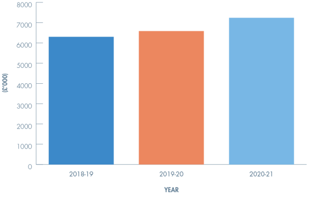 From 2011-12 to 2018-19, we reduced our net resource requirement by 26%, from £8.1m to £6.0m in cash terms (38% in real terms), on a like for like basis. Savings during this period were achieved primarily through reductions in staff numbers, a change in senior management structures and the implementation of a staff Voluntary Exit Scheme. However, since 2019-20 our expenditure has increased, and for 2021-22, we have sought and obtained a 5.1% increase in our budget. This will enable us to increase our focus on staff, aligning skills, cost and efficiency, as well as on quality and governance as part of the Business Transformation Programme. We also obtained the necessary capital funding for our Office accommodation project.