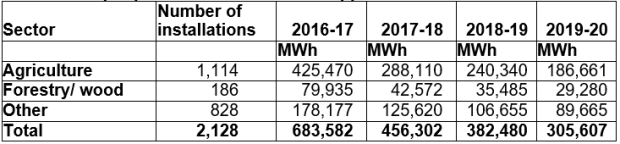- The significant amendments to the tariffs from 1 April 2017 appears to have been a key factor in a substantial reduction in the overall heat generated under non- domestic RHI since 2016-17. The trend of the significant reduction in both heat output produced and the corresponding RHI payments has continued again in 2019-20 as outlined in Tables 2 and 3 below.